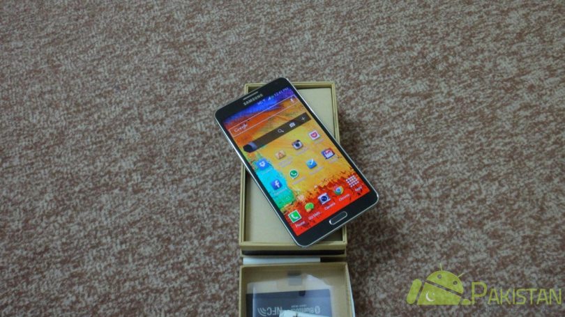 Look what did we get today! An all new Samsung Galaxy Note 3, the latest and the greatest Android device from the Samsung Galaxy Note series. A few weeks back, Galaxy Note 3 was officially announced at a media event in Lahore and has been available in the market since then. We will be reviewing the Samsung Galaxy Note 3 very soon, but before that, let’s quickly go through the unboxing photos we took today when opening up the box which looks very much like the box of Samsung Galaxy S4.